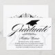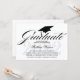© Socialite Designs. Our elegant script / calligraphy "graduate" text and graduation cap, with black text on white background, add a touch of simple elegance to this graduation invitation. The background has a subtle grey year of graduation watermark. The back of the invitation has an elegant ornament design with "Class of" and year text. Easily replace our template text for your special event.