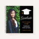 This elegant senior photo graduation guest notebook features chic white script next to your high school or college graduate photograph for the senior class of 2025. Customise with your name and class under the lovely calligraphy and have all of your friends autograph this guestbook for a great keepsake. Features a white grad cap on a trendy black guest book.