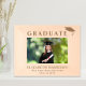 Elegant laser-etched wood frame to display the grad's photo featuring "Graduate" and their name, school and class year in classic serif typography.