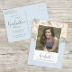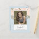 Celebrate your graduate in style with these graduation party invitations featuring a customizable photo template and elegant calligraphy script paired with modern typography. Accented with blush pink floral details and soft light blue tones, this chic and elegant design is perfect for any high school or college grad party invite. A beautiful blend of personalization and sophistication to set the tone for an unforgettable celebration.