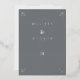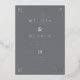 This elegant wedding invitation features a sophisticated, vertically oriented layout with ample negative space that highlights the text. The color palette consists of a dark gray background paired with crisp white text and decorative motifs, creating a refined contrast. Geometric corner accents frame the design, adding a modern touch to the classic serif typography used throughout. The overall style is formal and timeless, perfect for an upscale wedding celebration, conveying a mood of sophistication and refinement.