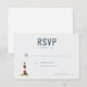 This wedding RSVP card features a clean, minimalist design with ample white space and a touch of elegance. The layout includes a bold serif font for the "RSVP" heading, complemented by a charming illustration of a red and white striped lighthouse on a small patch of green grass. The color palette is soft, primarily using grays, whites, and subtle blue-gray tones, creating a sophisticated yet inviting atmosphere. Customizable placeholders allow for personalization, while options to indicate attendance status ensure clarity. Perfect for formal events, this card combines modern minimalism with classic touches, making it ideal for conveying important details in a stylish manner.