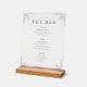 Elegant Grayscale Minimalist Bar Menu Acrylic Sign