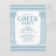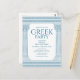 Greek birthday invitation featuring minimalist temple pillars and Greek meander pattern in blue. Customisable product for a memorable celebration. Perfect for your Ancient Greece or Ancient Rome-themed weddings, engagements, graduation parties, anniversaries, save the dates, bachelorette and birthday parties.