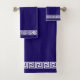 Elegant mediterranean Greek pattern frame on white and navy blue Towel Set. Vintage Greek pattern.