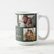 This elegant green family photo collage mug is the perfect way to capture your most cherished memories and turn them into a unique holiday gift. The classic deep green background creates a calm, harmonious base for your photos, emphasizing their warmth and familial character. Personalized inscriptions make it the perfect gift for Christmas, anniversaries, parents, or grandparents. It's an everyday mug that tells your shared story.