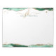 Personalised, elegant notepad with calligraphy script initials or monogram and name in green and gold with green agate and faux gold glitter border accents. CHANGES: The text font style, colour, size and placement can be changed by clicking EDIT for a custom look. ASSISTANCE: For help with design modification or personalisation, colour change, resizing, transferring the design to another product or if you would like coordinating items, contact the designer BEFORE ORDERING via the Zazzle Chat MESSAGE tab below or email makeitaboutyoustore@gmail.com.