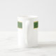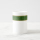 Chic white china mug, with a golden edged green and gold swirl pattern band, around the top. Customise to add any text you want. Matching products are available.