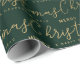 Elegant Green and Gold Merry Christmas Text Wrapping Paper