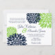 Elegant Green and Navy Blue Floral Burst Wedding Invitation