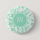 Elegant Green and White Damask Scroll Monogram 6 Cm Round Badge