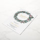 Elegant green blue red floral Christmas wreath party invitation with watercolor leaves, mistletoes, berries in red and pink and green and blue pine branches illustration.