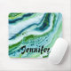 Elegant Green Blue WHITE FAUX MARBLE PERSONALIZED Mouse Pad