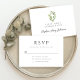 Custom Name Elegant Green Botanical Cross First Communion RSVP Card.