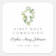 Custom Name Elegant Green Botanical Cross First Communion Square Sticker.