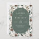 This elegant wedding invitation features a vintage-inspired design with an oval-shaped central panel set against a muted green background, surrounded by a floral and botanical border of leaves, berries, and pinecones in soft beige, olive green, and earthy brown tones. The layout is symmetrical, creating a balanced and harmonious composition that exudes warmth and sophistication. Elegant serif typography highlights the names and event details, while the overall style blends classic botanical prints with rustic charm, making it perfect for an intimate and sophisticated gathering. The clean, polished digital illustration technique enhances the natural, organic feel, ideal for celebrating a special life moment with grace and refinement.