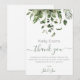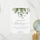 Express your heartfelt gratitude with this modern wedding thank you card, adorned with lush watercolor green leaves and an elegant calligraphy script. The design beautifully showcases your wedding memories, with space to add your own photo, customised message, and guest names for a personal touch. Delicate botanical accents evoke the charm of a sunlit garden, while bold and flowing text highlights your appreciation in style. Perfect for post reception notes or table place cards, this card is a stylish keepsake for friends and family to cherish. Easily adapt colours and content to suit your celebration, creating a truly memorable thank you.