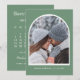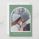 This customisable arch Save the Date features a stylish winter in elegant green tones, paired with a modern calendar layout. Couples can personalise the design by adding their own photo and adjusting the circle graphic to highlight their wedding date. A perfect blend of personal and seasonal charm, ideal for announcing your winter wedding in a memorable way. This save the date card is a part of a winter holiday collection with coordinating items available. We encourage you to explore the full set to create a perfectly matched party celebration.
