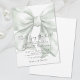 This Girly and Cute Coquette Style Bridal Shower Invitation features an oversized sage green bow that steals the spotlight, covering almost the entire design. The soft green bow adds a playful yet elegant touch, paired with the phrase "She's tying the knot!" in a chic combination of black handwritten script and classic serif fonts.