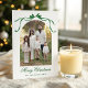 Send festive greetings with this elegant Christmas card featuring a watercolor green bow and ribbon design. The front highlights one favourite photo in an arch-shaped frame accented by the hand-painted bow, while the back includes a three-photo collage layout to showcase more holiday memories. Personalise with your name and message to create a timeless Christmas card that blends classic style with a modern multi-photo format.