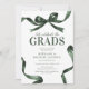 Celebrate two graduate's milestones with unmatched elegance! Our double graduation party invitations blend a timeless white backdrop with a trendy green watercolor bow and ribbon border. Coupled with a customisable text template, these invitations are a beautiful way to commemorate this life-changing event.