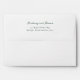 This wedding envelope features a clean, minimalist design with a simple layout centered on a white background. The names are elegantly displayed in a soft green cursive font, while the address is presented in a smaller serif type, maintaining a cohesive color scheme. The overall style exudes sophistication and formality, making it perfect for special occasions like weddings. Its uncluttered appearance ensures readability and adds a touch of elegance to any invitation suite.