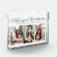 Modern holiday photo block featuring "Merry Christmas" in an elegant green calligraphy script with a white background. The photo block features 3 of your favourite vertical photos. Personalise the photo block by adding your family name and the year.