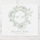 Elevate your special day with our elegant, vintage Baroque-style wedding sparkling wine label, a masterpiece of timeless elegance. Featuring a delicate French sage green chinoiserie crest with delicate line art flowers and a bird on a pristine white background, this design exudes classic charm and sophistication. Its simplicity highlights its refined details, creating a design as graceful as your love story. Perfect for those who cherish tradition and elegance. Created by Simply Farmhouse Press.