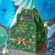 Celebrate the holiday season with this elegant green Christmas gift wrap design. Featuring a rich green backdrop adorned with intricate gold and white patterns of snowflakes, holly leaves, and Christmas trees, this wrap creates a festive and sophisticated atmosphere