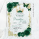 Elegant Green Emerald Crown Quinceanera Acrylic Invitation, Emerald Green Floral with Gold Victorian Borders & Tiara Quinceanera Acrylic Invitation, Green Floral Gold Tiara Mis Quince Anos XV Invitaciones de Acrilico