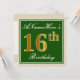 Elegant, Green, Faux Gold 16th Birthday + Name Invitation
