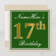 Elegant, Green, Faux Gold 17th Birthday + Name Invitation