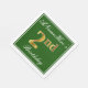 This simple and elegant paper napkin design features a message like "ANameHere’s 2nd Birthday" (with the "2nd" having a faux gold-like colouring) within a green-coloured square area featuring a simple border outline. The name is in a white-coloured script-like text, and can be customised. Napkins like these could perhaps be used at a birthday party for somebody who is celebrating their second birthday. [~Z0000137]