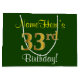 Elegant, Green, Faux Gold 33rd Birthday + Name Large Gift Bag