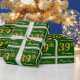 This simple and elegant wrapping paper design features a personalised message like "FirstName’s 39th Birthday" (with the "39th" having a faux/imitation gold-like colouring look) within a green-coloured square area featuring a simple border outline. The name is in an elegant white-coloured script-like text, and can be personalised. Wrapping paper like this could perhaps be used when wrapping birthday gifts for somebody who is celebrating their thirty ninth birthday. [~Z0000219]