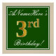 Elegant, Green, Faux Gold 3rd Birthday + Name Poster