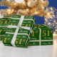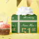 This simple and elegant wrapping paper design features a personalised message like "Name-Here’s 51st Birthday" (with the "51st" having a faux/imitation gold-like colouring look) within a green-coloured square area featuring a simple border outline. The name is in an elegant white-coloured script-like text, and can be customised. Wrapping paper like this could perhaps be used when wrapping birthday gifts for somebody who is celebrating their fifty first birthday. [~Z0000219]