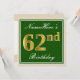 Elegant, Green, Faux Gold 62nd Birthday + Name Invitation