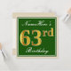 Elegant, Green, Faux Gold 63rd Birthday + Name Invitation