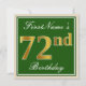 Elegant, Green, Faux Gold 72nd Birthday + Name Invitation