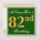 Elegant, Green, Faux Gold 82nd Birthday + Name Invitation