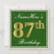 Elegant, Green, Faux Gold 87th Birthday + Name Invitation