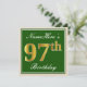Elegant, Green, Faux Gold 97th Birthday + Name Invitation