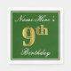 Elegant Green, Faux Gold 9th Birthday; Custom Name Napkin