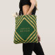 Elegant green tote bag featuring chic faux gold square lines pattern that you can personalise with your name. Great as gifts for family and friends or for yourself.