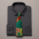 Introducing our stunning green floral tie, a timeless design that adds a touch of modern elegance to any outfit. This beautiful necktie features a vibrant floral motif in shades of red and blue against a lush green background, creating a striking contrast that' ll turn heads. The rolled-up end makes it easy to store or showcase the unique pattern when worn.
