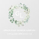 This design features an elegant watercolor wreath with lush green foliage. Customise with your own details.