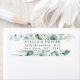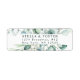 This return address label features painted watercolor eucalyptus, botanical green, and light blue leaves.