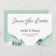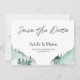 Elegant Green Forest design featuring watercolor mountain and coniferous trees in shades of dusty green perfect for rustic winter or woodland themes and locations. customise the text and information presented on this card to create a unique and elegant invitation.