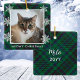 Elegant Green Gingham Cat Photo Meowy Christmas Ceramic Ornament